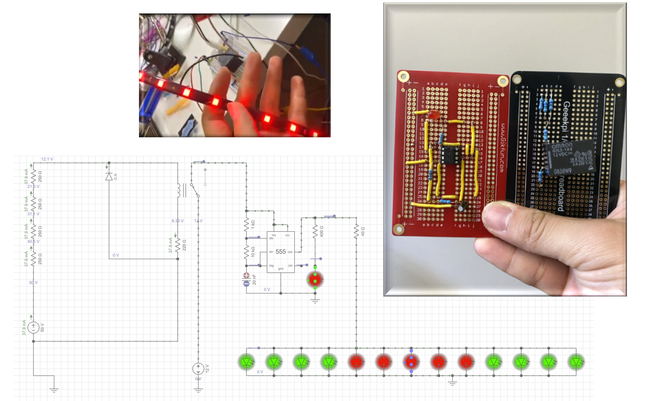- The system operates with two inputs: 50V and 12V. A 12V high-voltage relay is used to connect both circuits.
