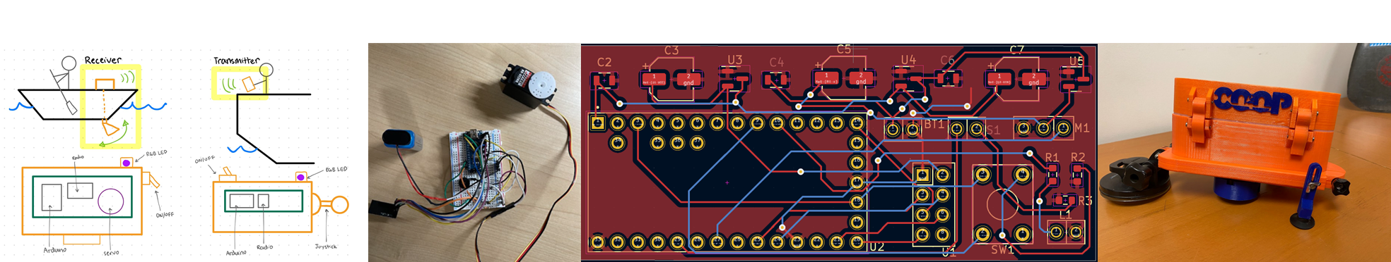 The team decided to design a system that allows canoes to be remotely controlled. Utilizing a transmitter and receiver setup similar to those employed in remote-control cars, our device enables visually impaired paddlers to paddle independently while a coach, paddling behind them, can remotely control the direction.