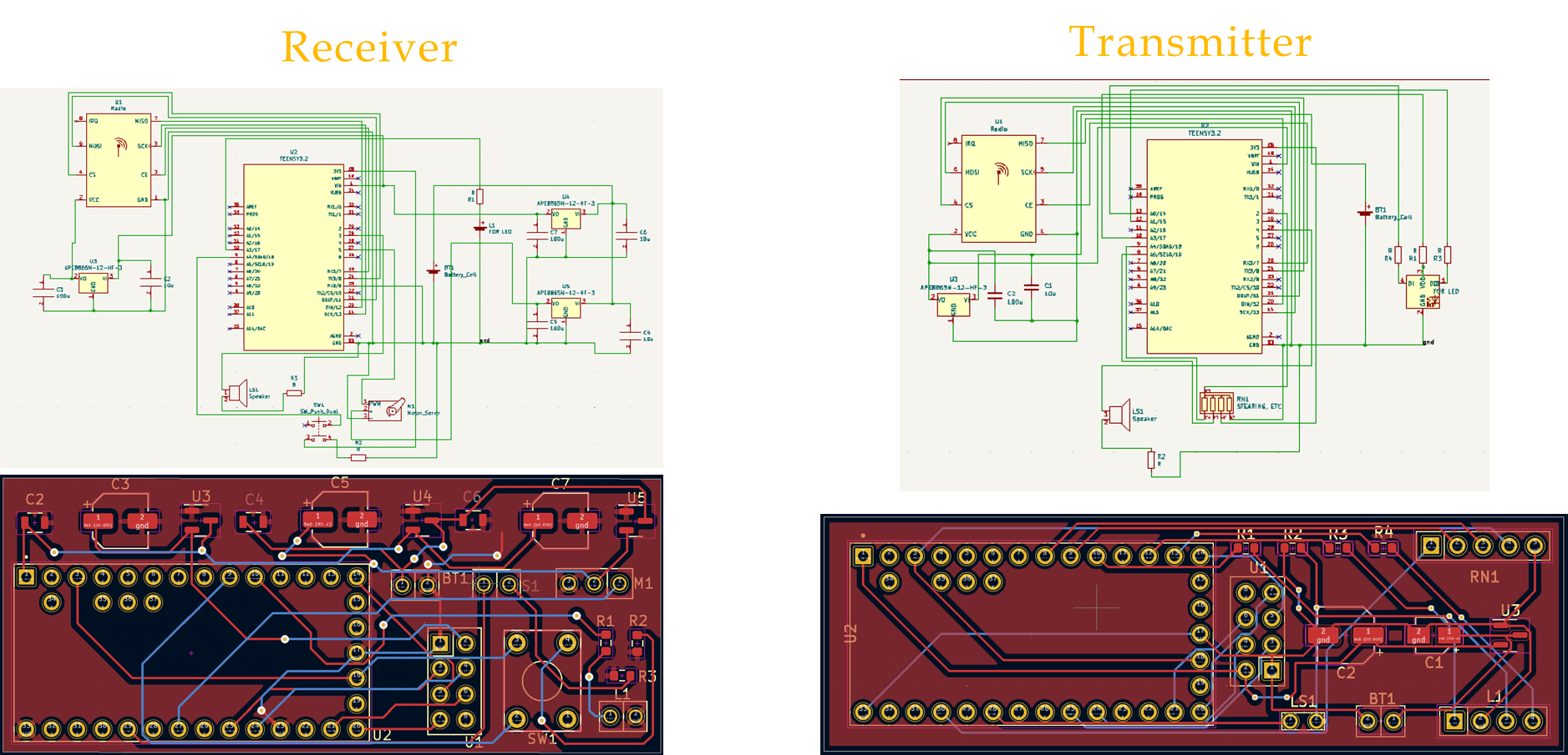 Utilizing Teensy microcontrollers and nRF24L01 radio modules, we engineered the control circuits for both the transmitter and receiver. My responsibilities spanned from prototype development and testing to PCB design and assembly. For PCB design and system testing, we employed KiCad, while the PlatformIO IDE v3.3.1 integrated with VSCode was used for programming the radio communication protocol.
