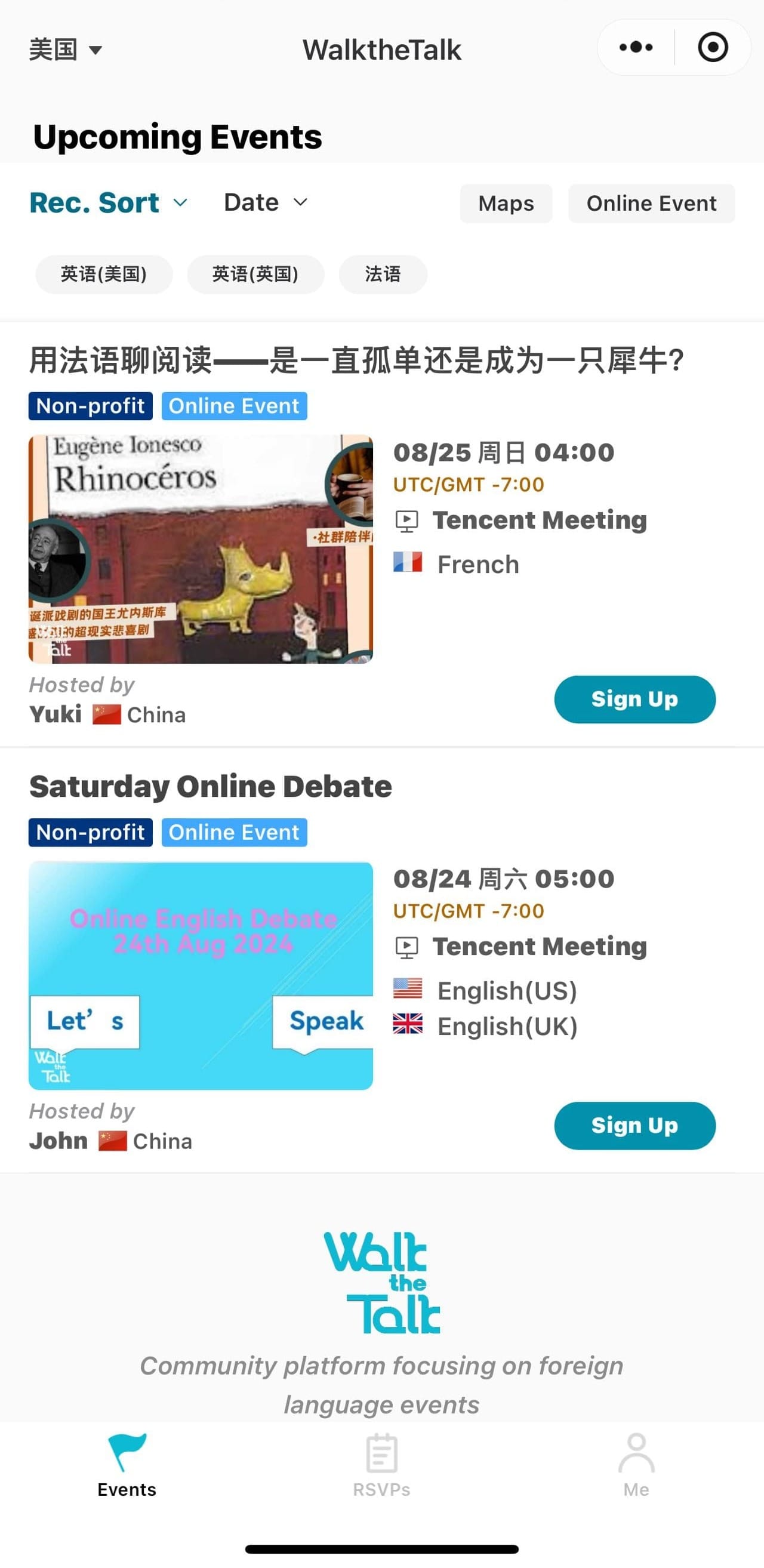 WalkTheTalk WeChat Little Program. This is a good app if you want to look for ESL events!